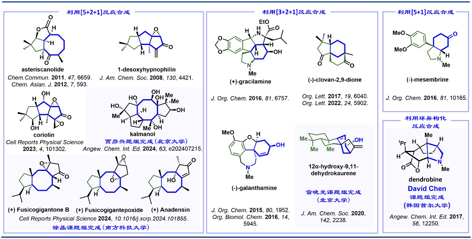 下图为余志祥课题组及国内外其他课题组基于余志祥课题组成环反应所合成的部分天然产物。