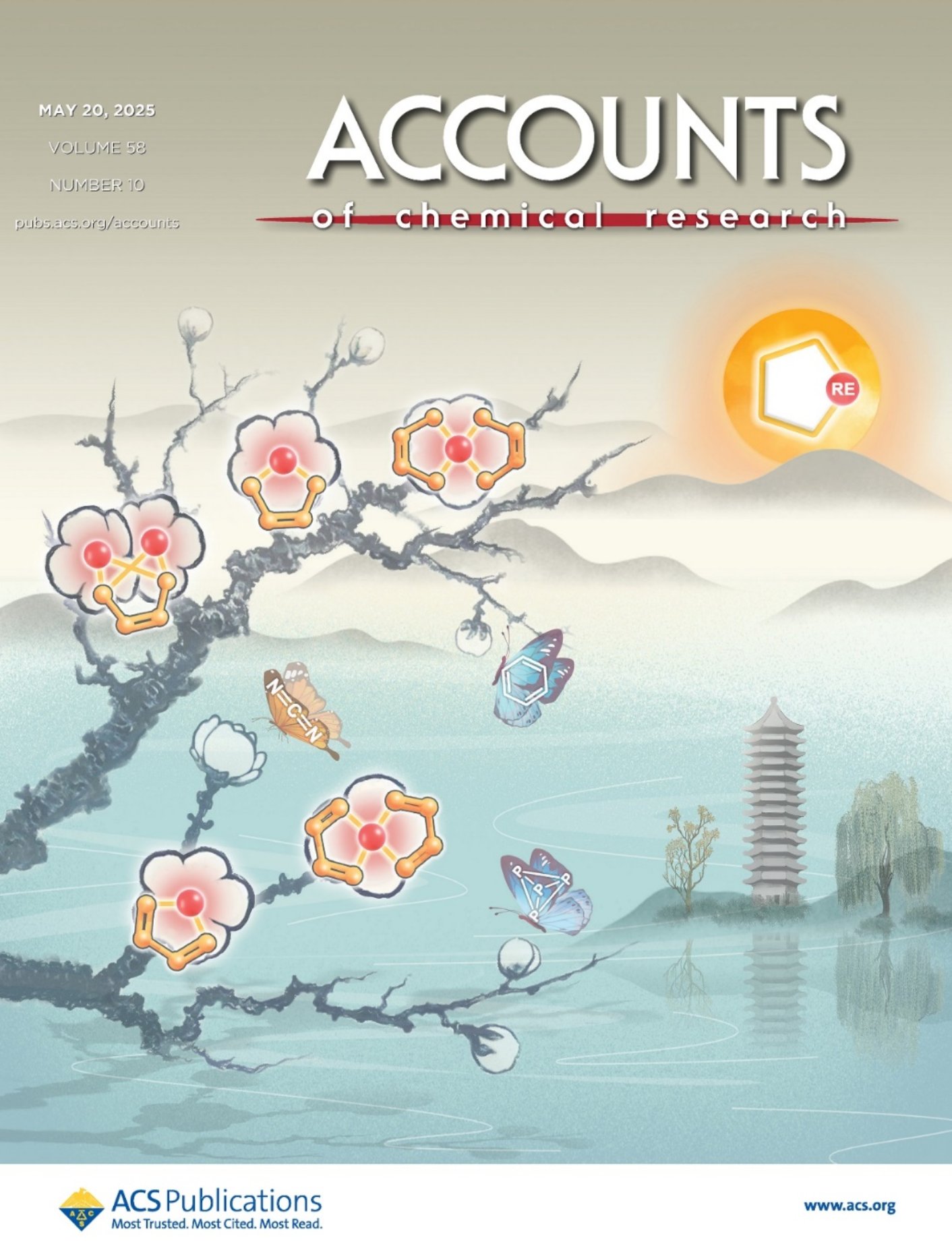 自1998年起,席振峰教授持续开展多取代1,4-二锂-1,3-丁二烯(又名双锂试剂)的合成及反应化学研究。当张文雄博士于2007年加入席振峰教授团队后,率先启动了双锂试剂与稀土卤化物的转金属化反应,尝试合成双稀土金属有机试剂。经过六年不断探索,研究团队于2013年意外获得了第一个双茂稀土金属杂环戊二烯,再经过两年的努力,发表了有关稀土金属杂环戊二烯的第一篇论文(Ling Xu, Yu-Chen Wang, Junnian Wei, Yang Wang, Zitao Wang, Wen-Xiong Zhang*, and Zhenfeng Xi, The First Lutetacyclopentadienes: Synthesis, Structure, and Diversified Insertion/C−H Activation Reactivity, Chem. Eur. J. 2015, 21, 6686)。此后,张文雄博士开启了稀土金属有机杂环化学之旅,在稀土金属有机杂环的合成、结构表征、反应性及合成应用等方面取得了一系列开拓性研究成果(图1,Chem. Sci. 2017, 8, 6852; Angew. Chem. Int. Ed. 2017, 56, 15886; J. Am. Chem. Soc. 2019, 141, 6843; J. Am. Chem. Soc. 2019, 141, 20547; J. Am. Chem. Soc. 2020, 142, 10705; J. Am. Chem. Soc. 2021, 143, 9151; Cell Rep. Phys. Sci. 2022, 3, 100831; J. Am. Chem. Soc. 2023, 145, 6633; Cell Rep. Phys. Sci. 2023, 4, 101479; J. Am. Chem. Soc. 2024, 146, 15609; J. Am. Chem. Soc. 2025,147, 1300.)。近日,他们应邀在Accounts of Chemical Research 杂志上发表了题为“The Enchanting Realm of Five-Membered Rare-Earth Metallacycles” 的综述文章(Acc. Chem. Res. 2025, 58, 1696–1709)。该论文系统总结了团队十余年来在相关研究领域的深入探索与积累:针对稀土金属杂环的合成难题,发展了直接转金属化和转金属化–还原等简单易行的合成策略,首次实现了包括稀土金属杂环戊二烯、稀土金属螺杂环戊二烯、稀土金属螺杂环戊烯、桥联双稀土金属杂环戊烯在内的一系列稀土金属有机杂环分子的合成、分离与表征;深入探讨了稀土金属杂环在小分子活化、碳–碳键构建及惰性化学键活化等转化中的高反应活性,揭示了其区别于主族和过渡金属的独特反应机制,表明通过合理设计,稀土金属不仅能够模拟过渡金属的典型反应特性,甚至在某些体系中展现出超越后者的独特反应能力,为其在合成化学中的应用拓展提供了切实可行的研究基础;并介绍了稀土金属杂环所展现的独特性质,首次将非平面芳香性引入稀土金属有机化学体系,基于配体的氧化还原性质实现了稀土金属杂环体系的多电子转移行为,拓展了稀土金属有机化学的研究边界。该论文被选为封面文章发表(图2)。
