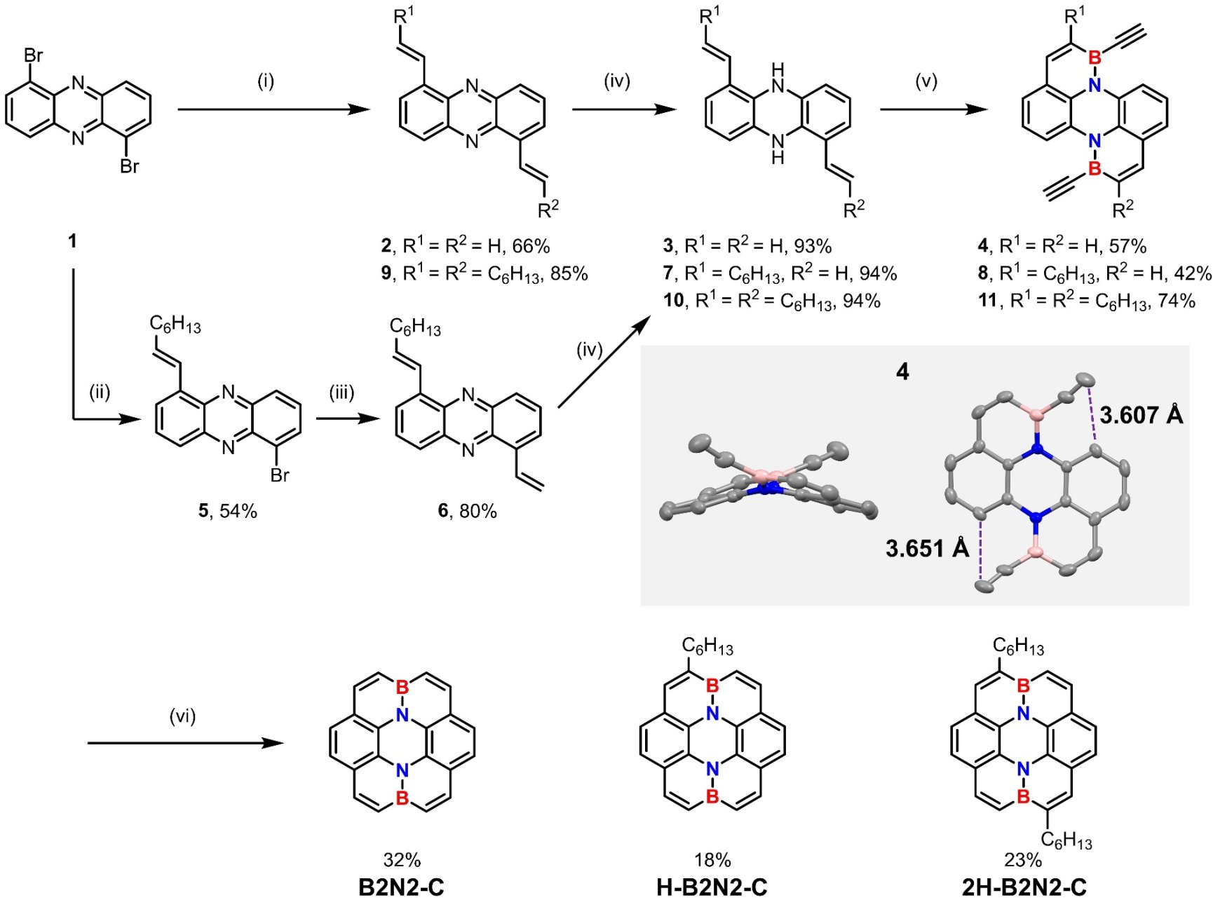 图1. 内部硼氮杂蔻的合成路线