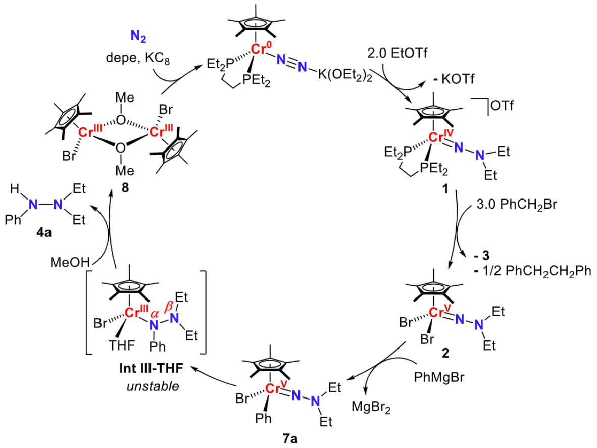 图7 从氮气到多取代肼的合成循环