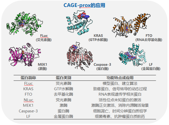 在建立CAGE-prox的标准操作流程后,两个课题组合作分别在荧光素酶、GTP水解酶、RNA去甲基化酶FTO、蛋白激酶、caspase细胞凋亡蛋白酶和炭疽致死因子(lethal factor)金属蛋白酶等一系列不同类型的蛋白上展示了该瞬时激活方法在活体环境下的普适性。在此基础上,他们进一步利用CAGE-prox建立了活细胞内的激酶正交激活和信号转导系统,完成了细胞凋亡蛋白酶的瞬时激活和酶切底物的组学鉴定,并通过激活细菌毒素蛋白(炭疽致死因子)开发了抗肿瘤蛋白质前药的治疗策略。这一通用的蛋白质原位激活技术有望在未来应用到动态生命过程的基础研究和疾病治疗的转化研究当中。
