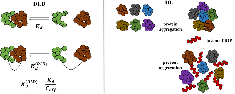 Abstract: Intrinsically disordered regions are often involved in allosteric regulation of multidomain proteins. They can act as disordered linkers to connect and interact with domains, resulting in rather complex allosteric mechanism and novel protein behavior. Therefore, it is necessary to analyze the diverse functions of disordered linkers in order to better understand allostery and relevant regulation process. Here we summarize recent advances in understanding the function of linkers and the advantages of adopting mutlidomain architecture with disorder linkers. It was shown that linkers between domains enhance the local domain concentration and make the allosteric regulation of weakly interacting partners possible, while linkers with only one tethered end cause an entropy effect to reduce binding affinity and prevent aggregation.