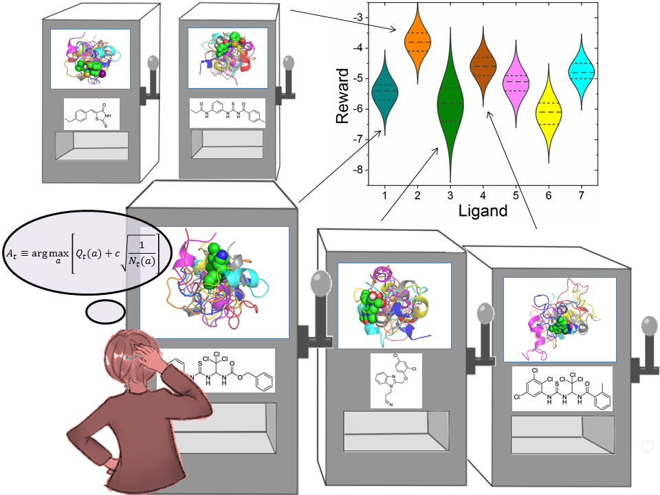 Driven by the deep learning, the field of machine learning and artificial intelligence has made rapid development in recent years, which has also had a significant impact on many disciplines, including chemistry. In view of the challenges and opportunities that machine learning may bring to chemistry, we actively explore the application of machine learning (especially reinforcement learning) in chemistry. For example, we modified the UCB algorithm of the multi-arm slot machine problem for drug screening of intrinsically disordered proteins, which greatly improved the efficiency of screening.