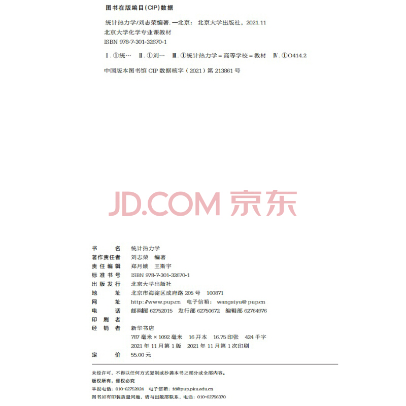 1. Zhirong Liu, Statistical thermodynamics (Peking University Press, 2021), ISBN 978-7-301-32670-1.