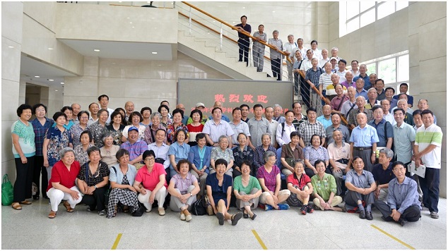 李翠娟老师指挥大家歌唱由李克安老师改编的歌曲《老同学们来相会》