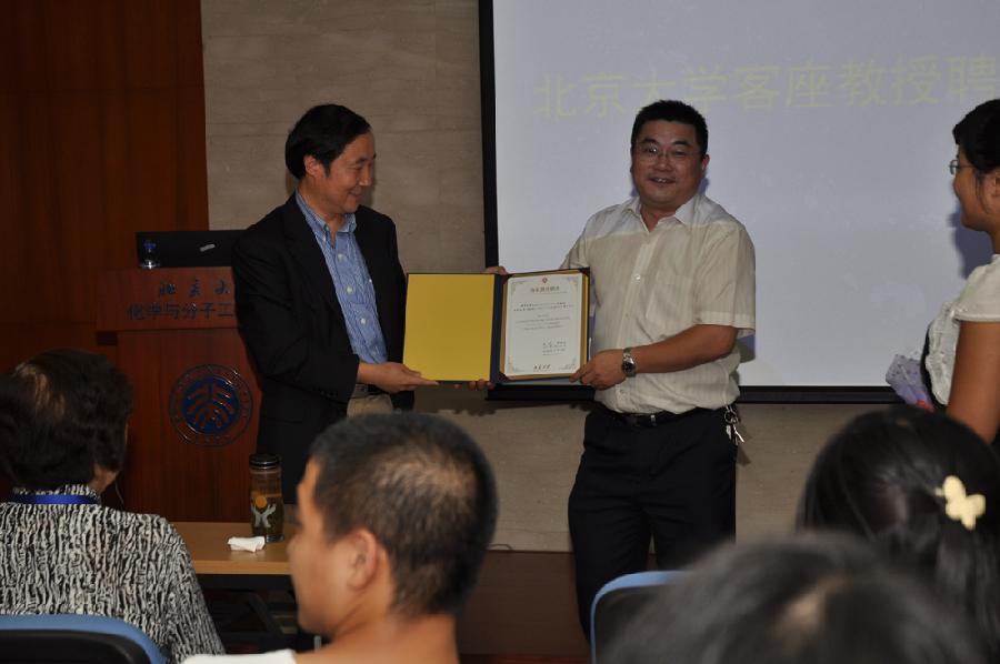 2011年8月24日下午,3003新葡官方网站授予陆艺博士客座教授仪式暨学术报告会在3003新葡官方网站举行,化学学院院长吴凯教授、副院长来鲁华教授、黄春辉院士、赵新生教授等化学学院师生出席了聘任仪式和报告会。吴凯教授致辞,并向陆艺博士颁发了3003新葡官方网站客座教授证书。