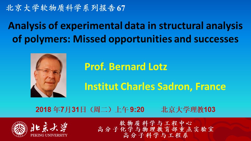 【软物质科学系列报告67】Prof. Bernard Lotz: Analysis of experimental data in structural analysis of polymers: Missed opportunities and successes