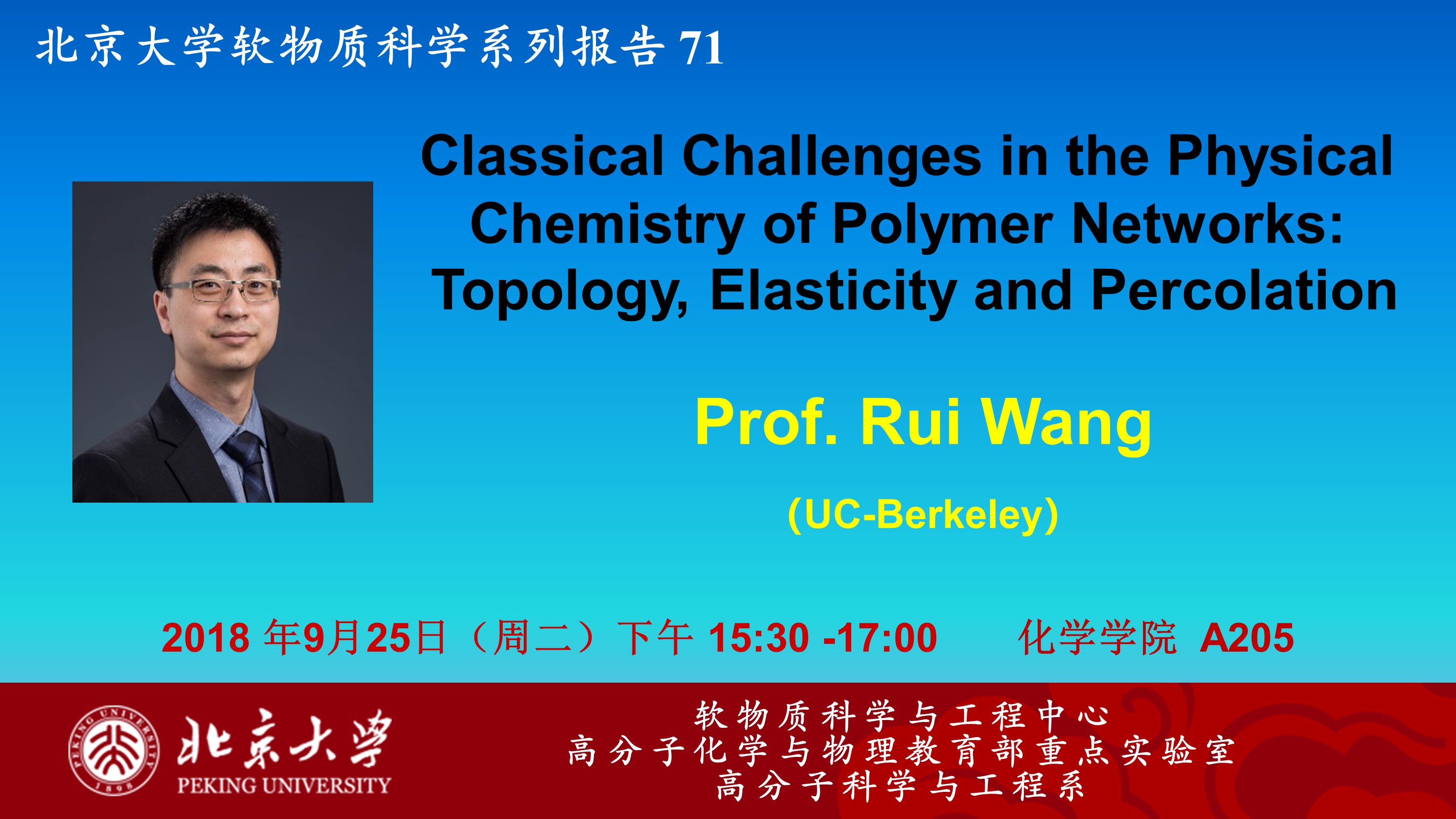 【软物质科学系列报告71】Prof. Rui Wang: Classical Challenges in the Physical Chemistry of Polymer Networks: Topology, Elasticity and Percolation