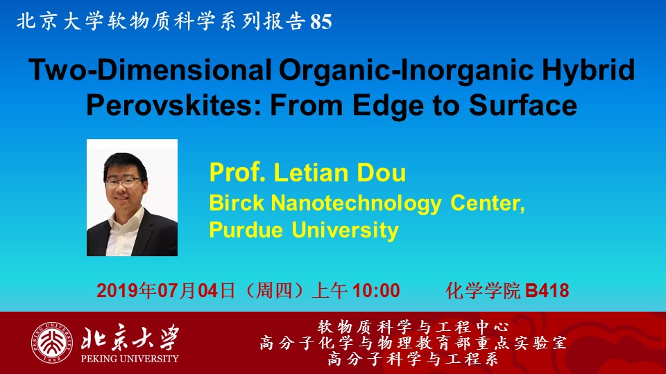 【软物质科学系列报告85】Prof. Letian Dou: Two-Dimensional Organic-Inorganic Hybrid Perovskites: From Edge to Surface