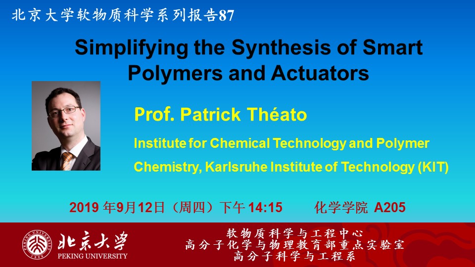 【软物质科学系列报告87】Prof. Patrick Théato: Simlifying the Synthesis of Smart Polymers and Actuators