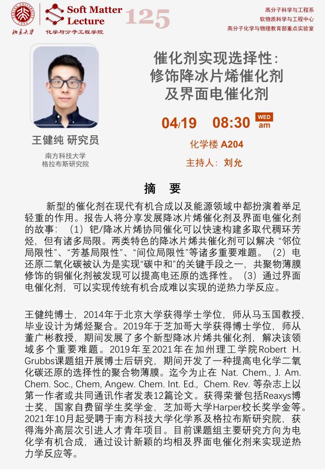 【Soft Matter Lecture 125】催化剂实现选择性:修饰降冰片烯催化剂及界面电催化剂