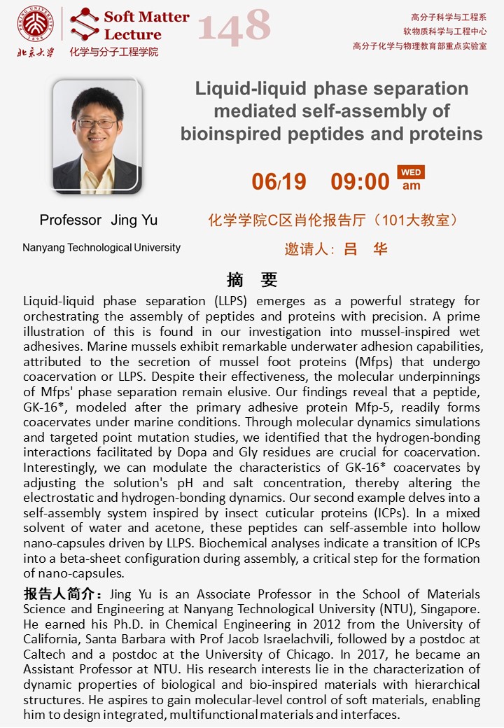 【Soft Matter Lecture 148】Liquid-liquid phase separation mediated self-assembly of bioinspired peptides and proteins
