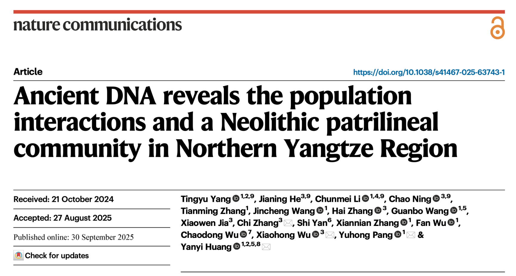 中华文明的起源与发展,与黄河流域的粟黍农业和长江流域的稻作农业两大核心区域密不可分。史前时期,这两大文明摇篮地带之间的人群如何互动、文化如何交流、社会结构如何演变,一直是考古学、人类学及遗传学研究的核心议题。然而,受限于关键区域古人基因组数据的不足,尤其是长江流域早期稻作农业人群的遗传历史及其社会形态信息的基本缺失,使我们对这些核心问题的理解和认识长期匮乏。
