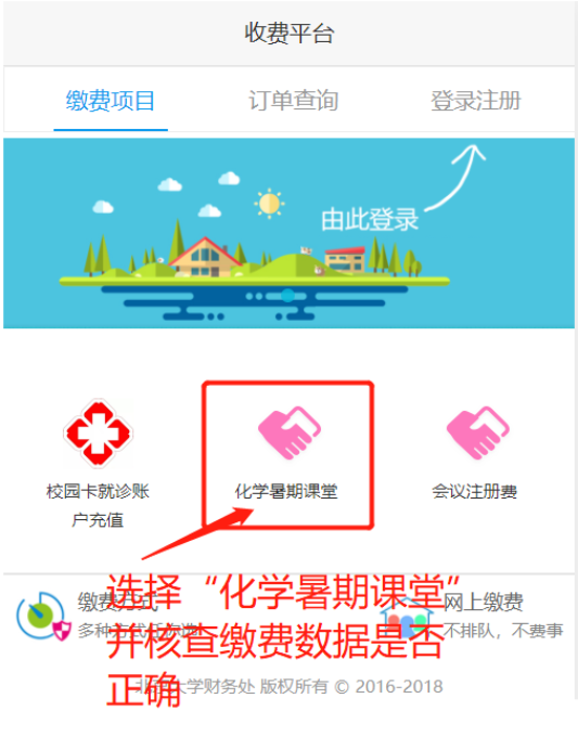 第三步:选择“化学暑期课堂”并确认缴费信息,单击确认支付,选择微信或者支付宝等支付方式后点击立即支付即可。