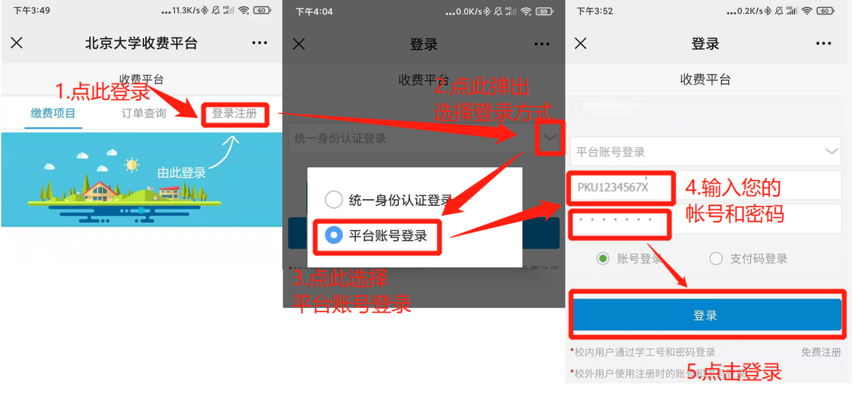 登录帐号为:PKU+您身份证的后八位,默认密码为:000000