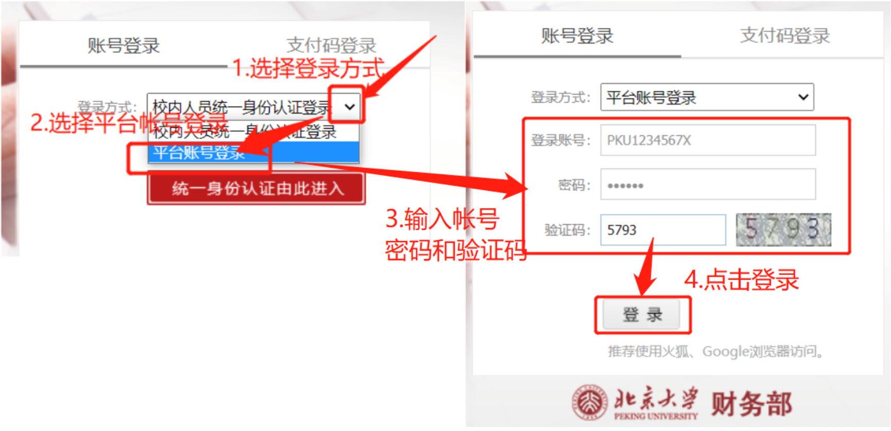 注意:帐号共11位,所有字母均为大写,(例:您的身份证号后八位为1234567X则您的帐号为:PKU1234567X)。