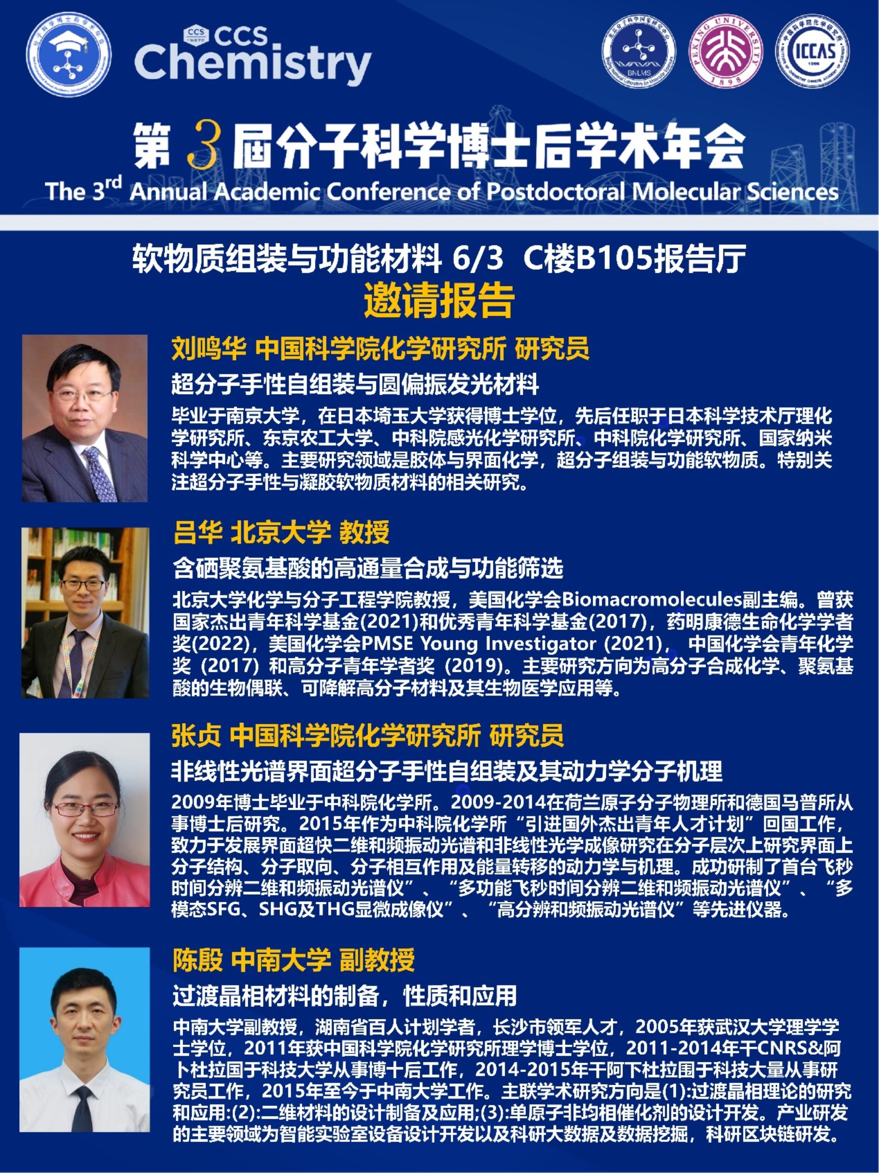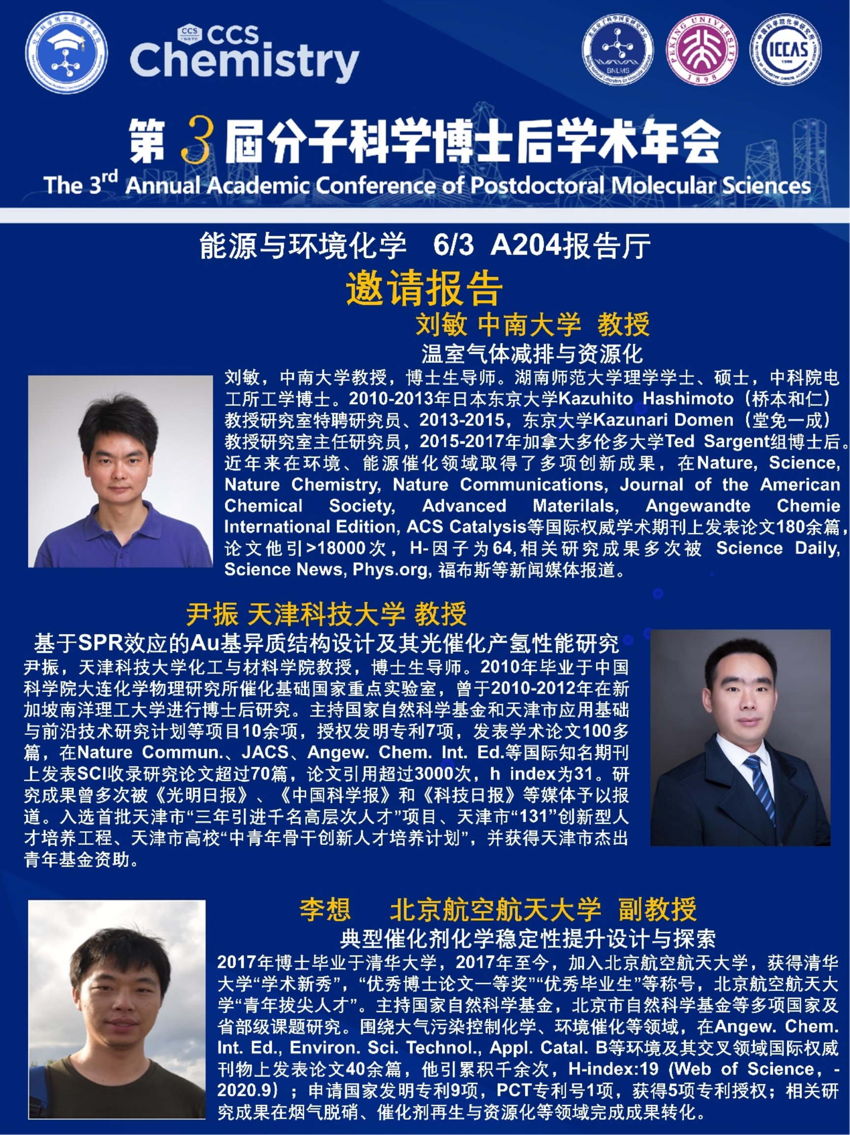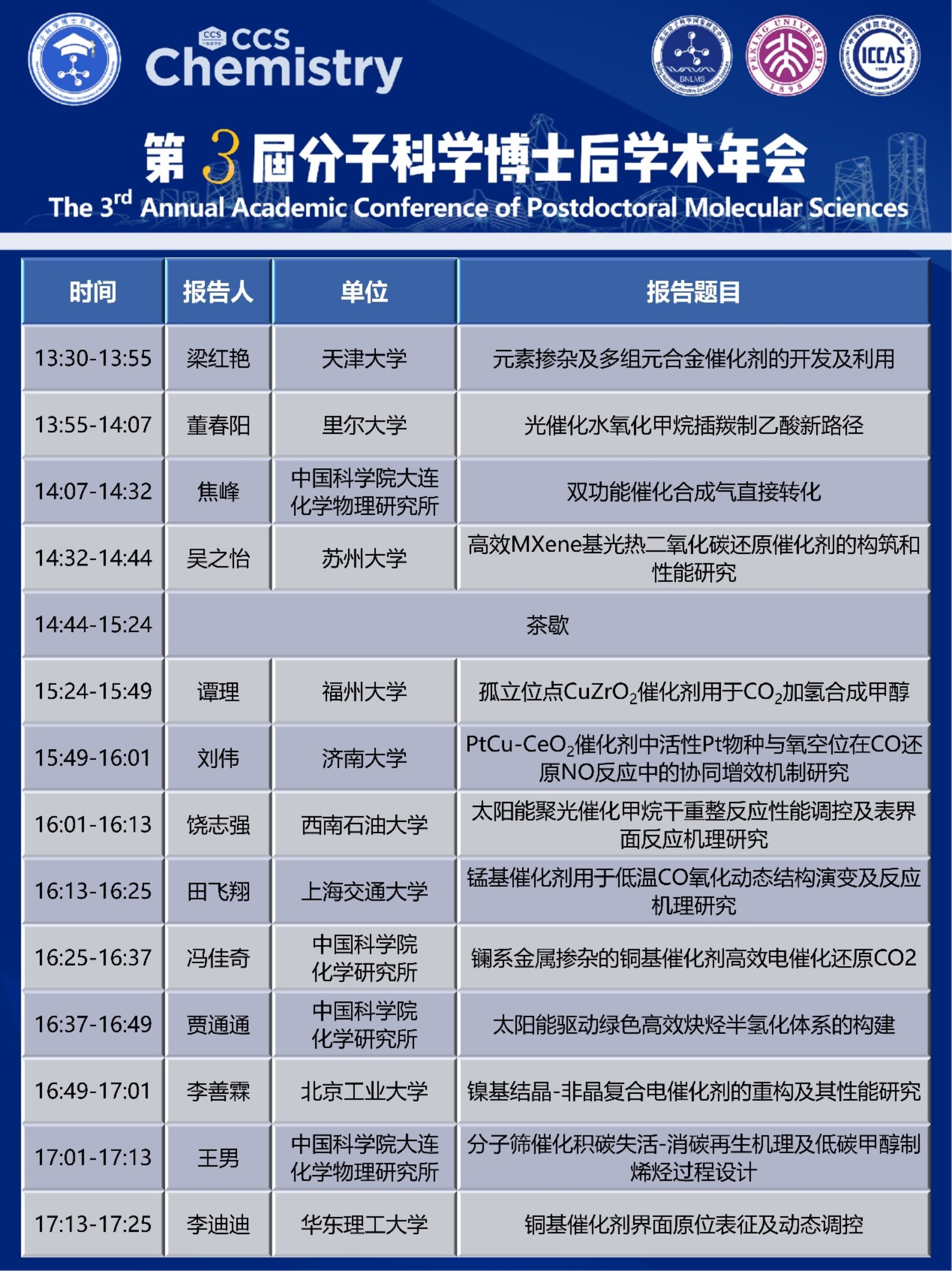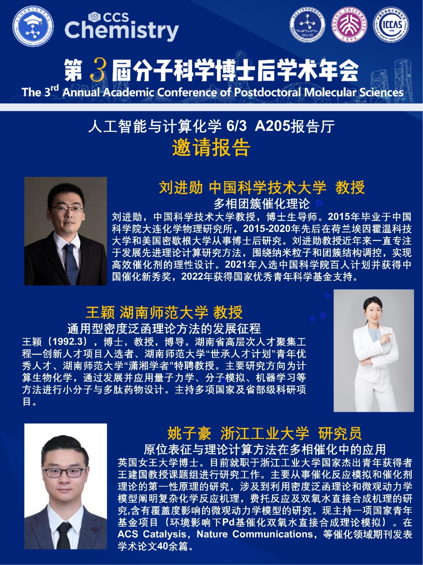 (6/3下午:催化化学与新化工,分子材料与纳米器件,有机与化学生物学,人工智能与计算化学)