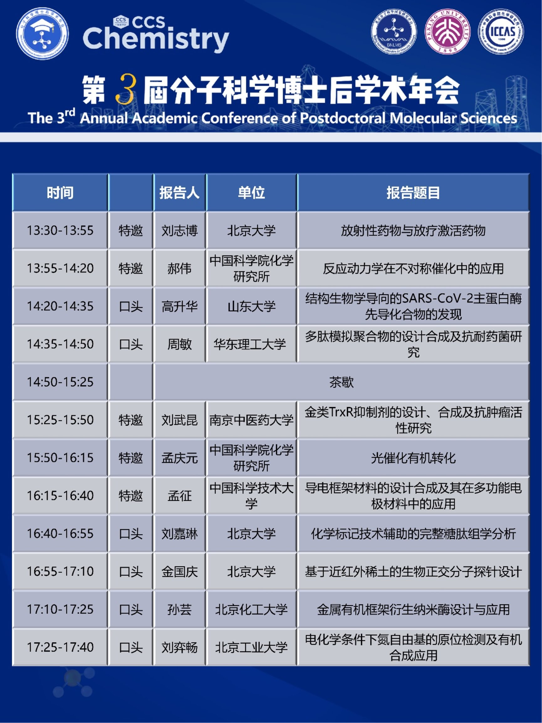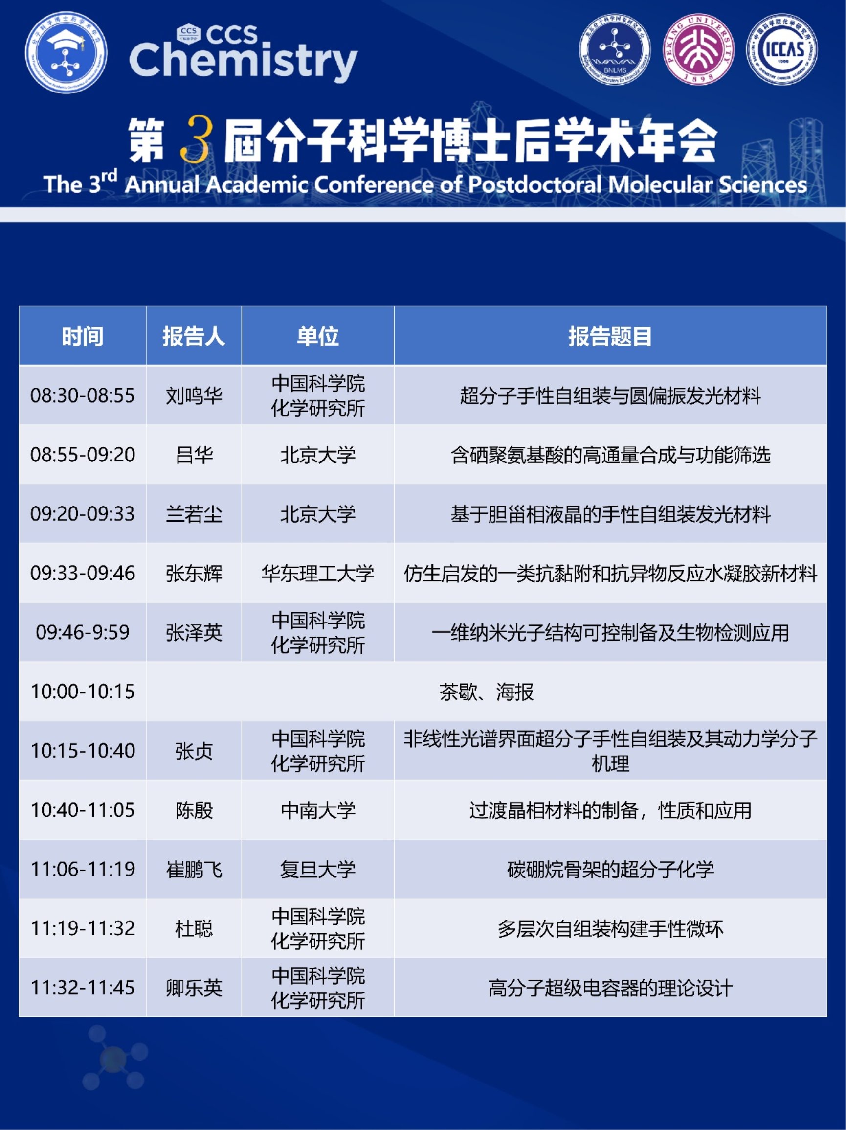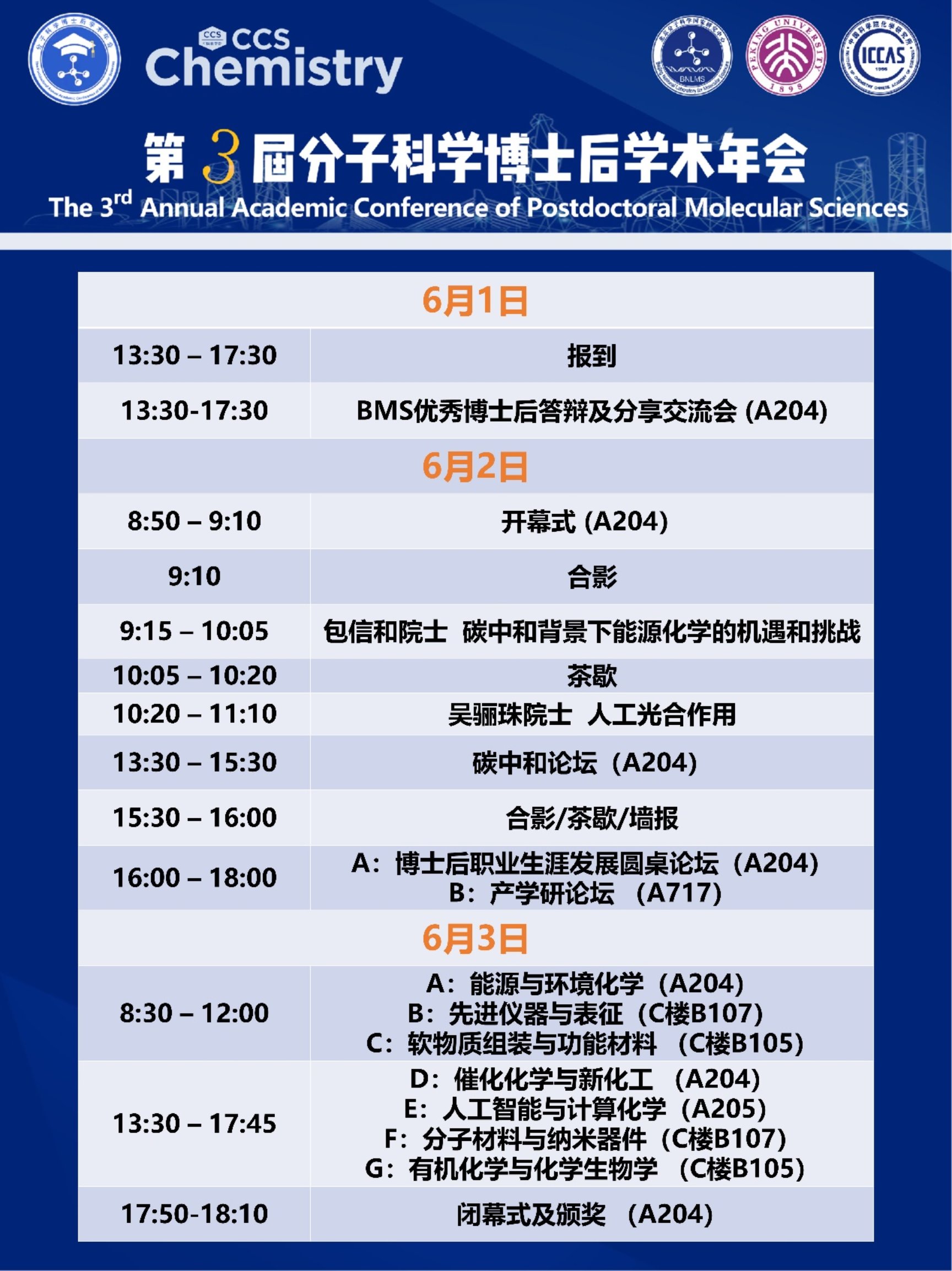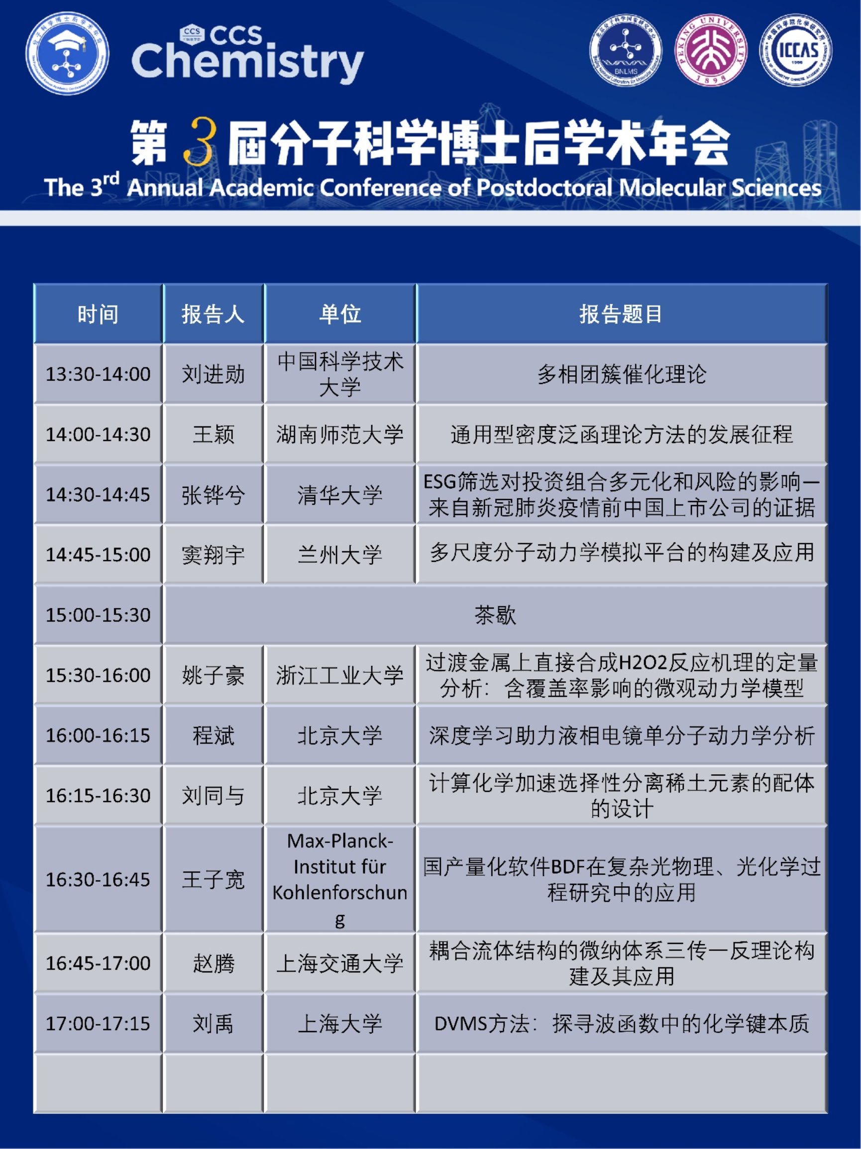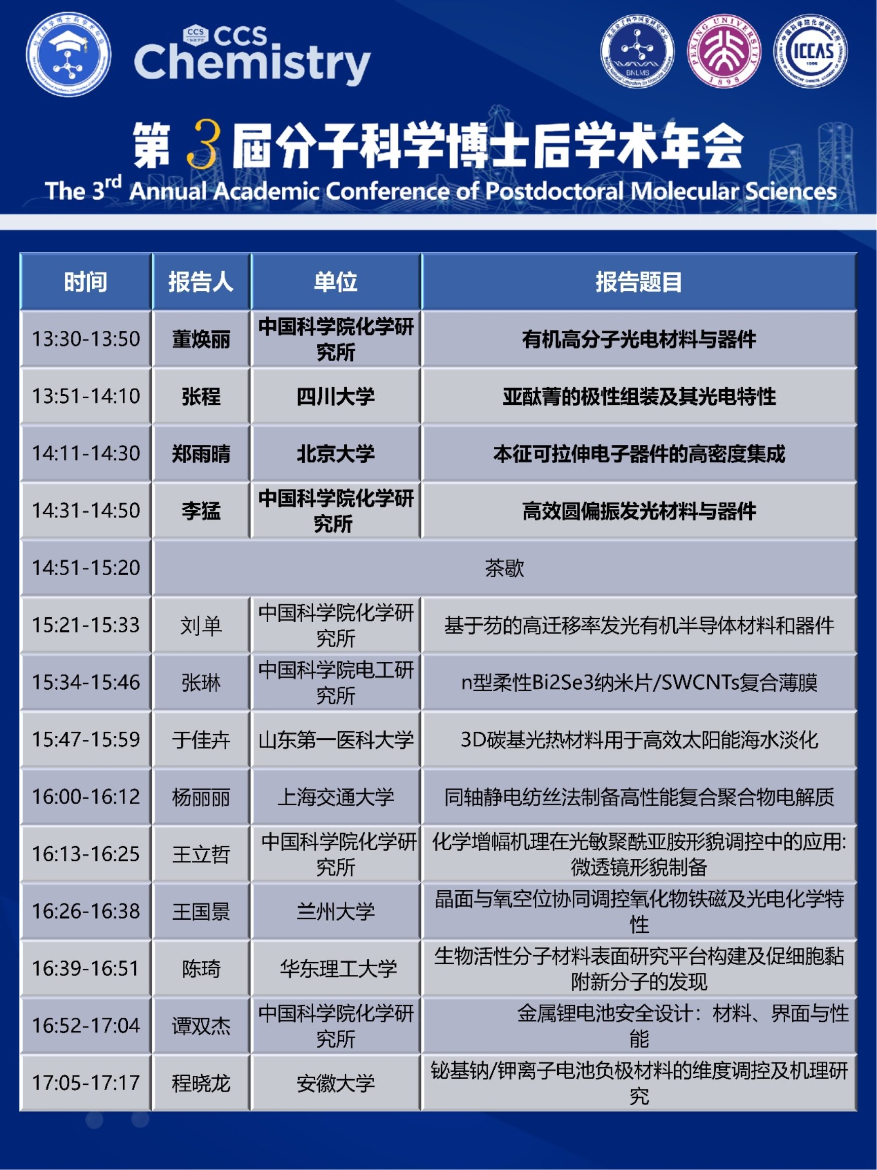 (6/3下午:催化化学与新化工,分子材料与纳米器件,有机与化学生物学,人工智能与计算化学)