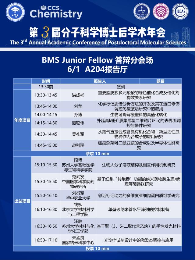 大会报到,BMS优秀博士后答辩及分享交流会(6/1下午)