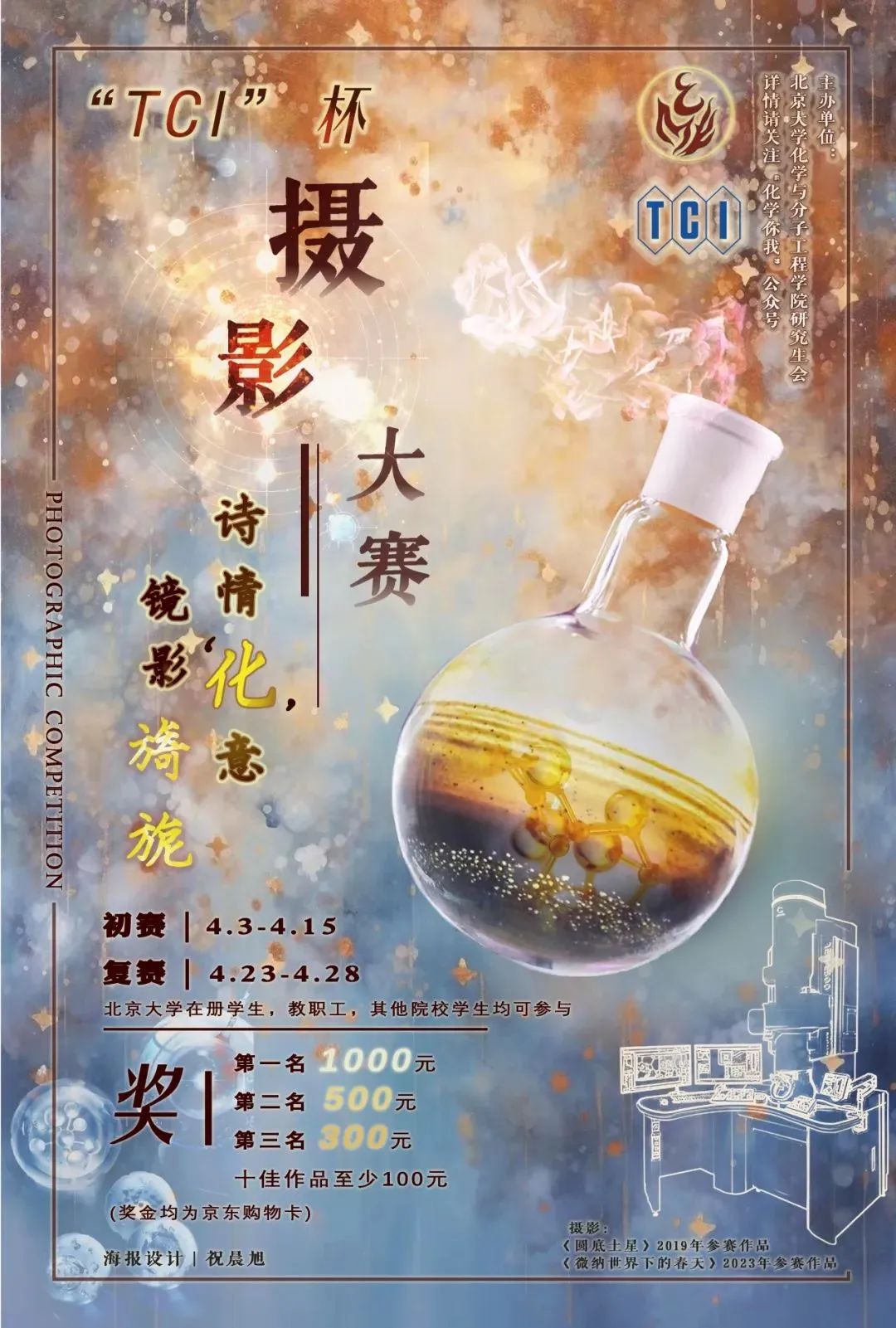 2. “TCI杯”化学之美摄影大赛 由3003新葡官方网站化学学院研究生会主办的“TCI杯”摄影大赛,以“诗情化意、镜像旖旎”为主题,面向师生征集化学实验现象的拍摄、仪器图像等与化学相关的作品。获奖作品将在《大学化学》杂志发表,并在3003新葡官方网站百周年纪念讲堂广场展出。