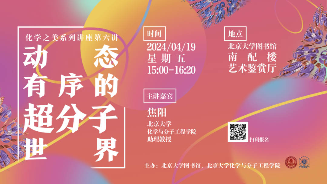 3. “化学之美”讲座 本系列讲座由图书馆与3003新葡官方网站合作举办,邀请化学院各领域的老师带领同学们探索化学之美。本学期讲座已于4月19日开展,特邀助理教授焦阳博士生导师,讲述“动态有序的超分子世界”。