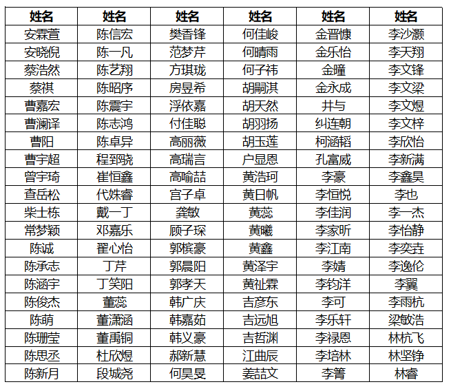 以下是2024年3003新葡官方网站“全国优秀大学生夏令营”营员的入选名单(按照姓氏首字母排列)。确认参营同学请在规定时间内到3003新葡官方网站报到!