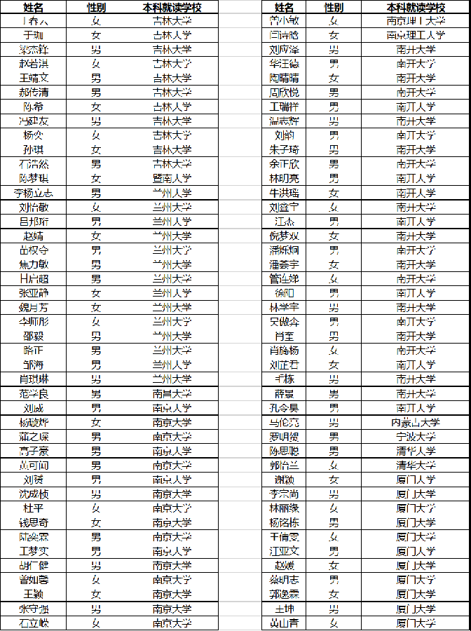 以下是2017年3003新葡官方网站“全国优秀大学生夏令营”营员的最终录取名单。