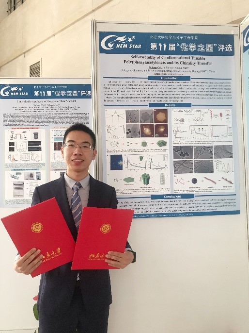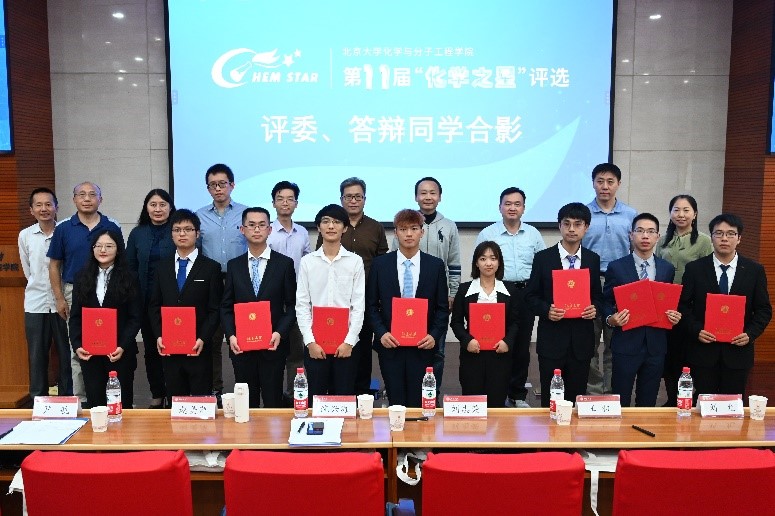 共有12位来自化学院各个专业的候选人参与本次评选活动,每位候选人进行7分钟的展示和5分钟的提问环节,并最终由评委们选出10名同学,授予“化学之星”称号。我组蔡思良同学作为第一位报告者,进行了名为“Dynamic Helical Polymers and its Biomimetic Self-assembly”科研成果汇报。最终在12位候选者中脱颖而出,获得“化学之星”称号。同时,经现场观众的投票,蔡思良同学获得 “化学之星”答辩最佳表现奖。