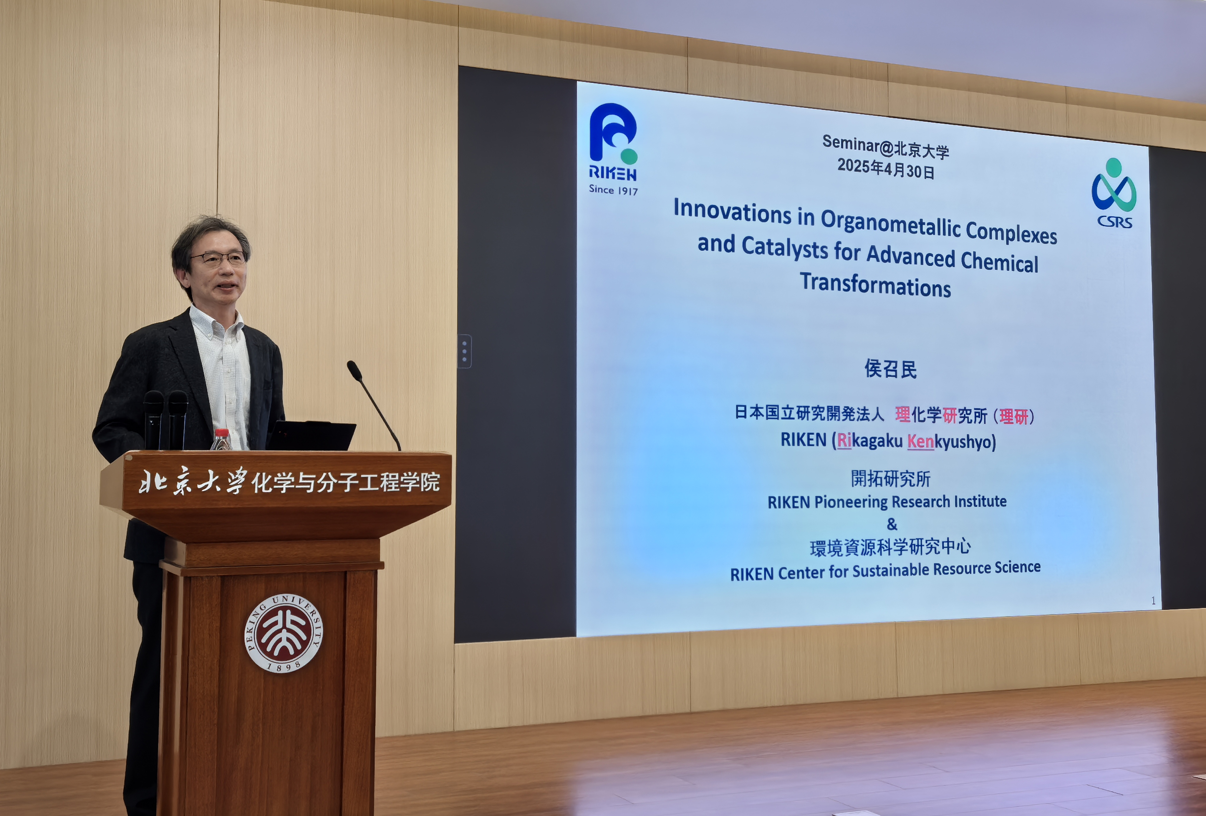 On April 30th, Prof. Hou Zhaomin from RIKEN, Japan, visited the College of Chemistry and Molecular Engineering at Peking University at the invitation of Prof. Zhang. During his visit, Prof. Hou engaged in academic discussions with group members and offered many valuable suggestions. He then toured our lab under the guidance of Prof. Zhang and took commemorative photos with us.