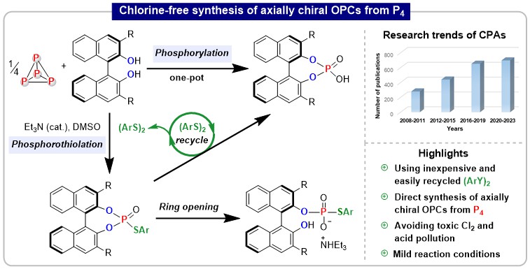 Since 2014, our group has been dedicated to the activation and transformation chemistry of yellow phosphorus (also known as white phosphorus in academia). We have proposed a chlorine-free synthetic strategy for yellow phosphorus, fundamentally addressing the issue of chloride pollution. On April 30, 2025, the People’s Daily app published a feature titled “Prof. Wenxiong Zhang’s Group Achieves Chlorine-Free Synthesis of Organophosphates from Yellow Phosphorus, Overcoming Pollution Challenges of Traditional Processes,” reporting on our group’s progress in phosphorus chemistry.