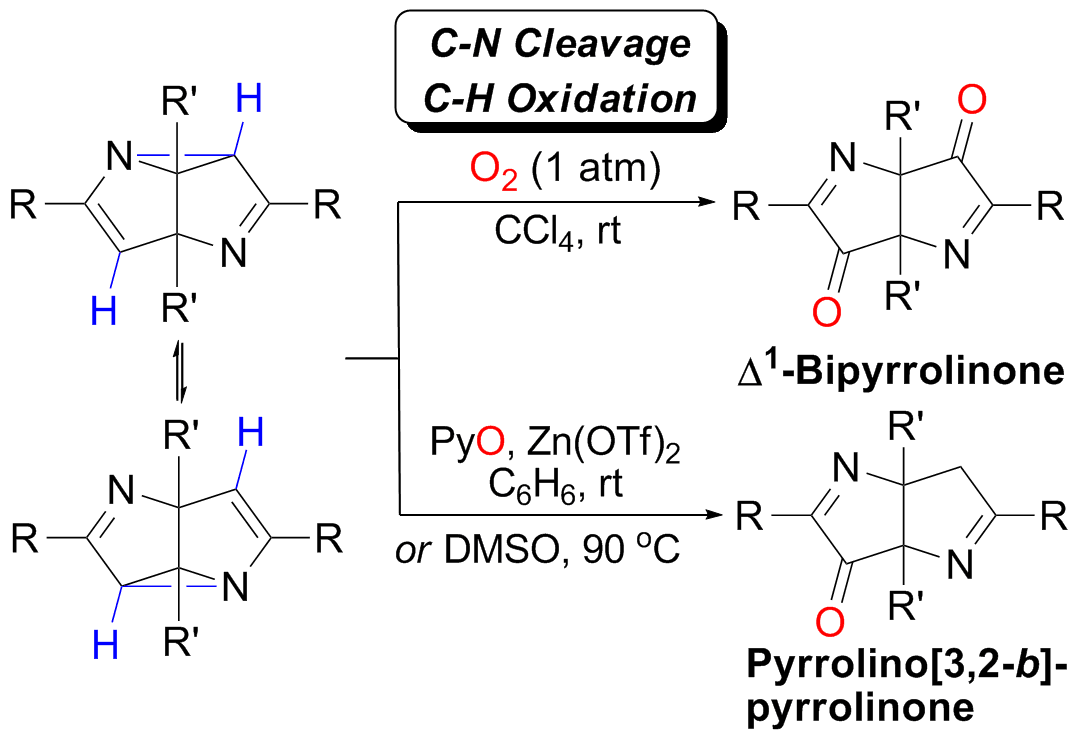 Oxidation of C-H bonds to C=O bonds by O2 only or N-oxides and DMSO: Synthesis of Δ1-bipyrrolinones and pyrrolino[3,2-b]pyrrolinones from 2,6-diazasemibullvalenes