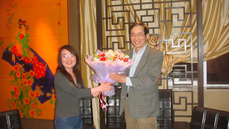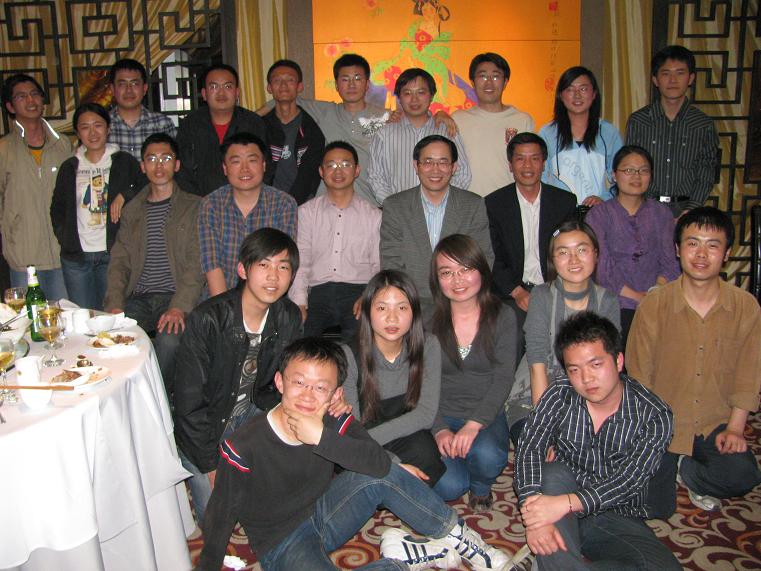 2009年4月,已经走进第二个十年的研究室迎来了它的第一个生日。4月9日,研究室全体成员来到眉州东坡酒楼庆祝研究室成立十一周年。首先席老师回顾了课题组第一个十年的研究思路,对过去的发展进行了总结,并向大家宣布了第二个十年研究思路的变化,希望各位成员都能够成为第二个十年又一个辉煌的见证人。张老师也表示课题组现在的氛围很好,希望大家更加努力、取得更大成绩。今年的组庆全部20名同学都参加了庆祝活动,这其中也包括刚刚进入研究室的07级本科生王涵柳、李跃星。大家在欢声笑语中共同举杯,共同祝愿课题组取得更大的成绩、更加美好。美味的蛋糕也富有特别的含义:一只充满活力的兔子和组标中的剪刀,一颗颗小红心象征每一位组员围成整个研究室的大心,象征着全体成员们团结一心;今年是研究室成立第十一年,恰好“十一”的罗马字母是“XI”,祝愿研究室的2009年能够成为“XI年”!