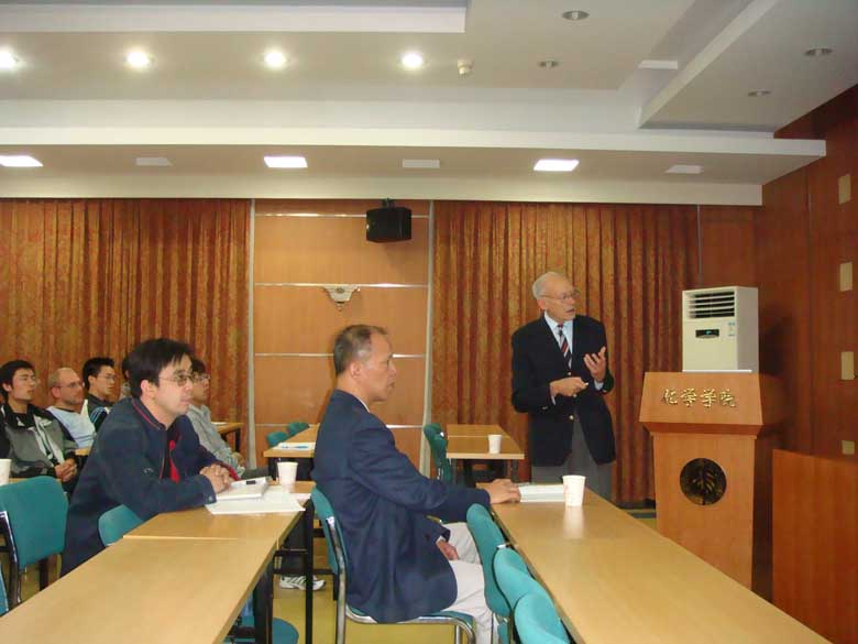 Prof. Henri B. Kagan, Emeritus Professor at University Paris-Sud, Laboratoire de synthèse asymétrique Institut de Chimie Moléculaire et des Matériaux d Orsay, Paris, France, visited this lab on September 24, 2008. Prof. Kagan gave a “111 project” lecture at the College of Chemistry, Peking University.