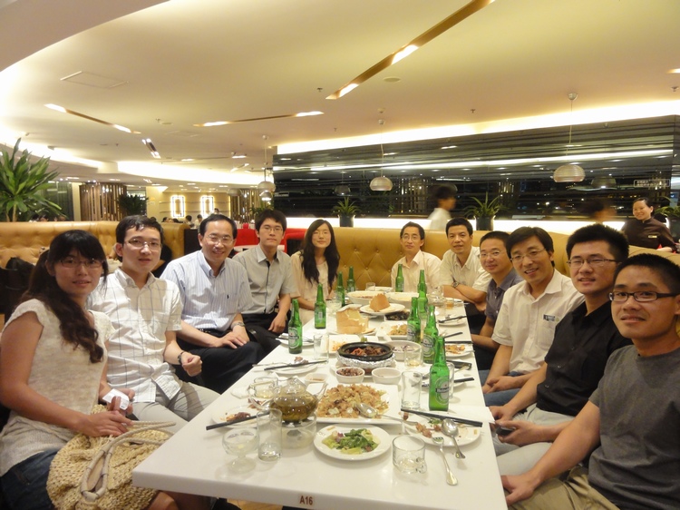 2011年7月24-28日,由IUPAC主办,中科院上海有机所与华东师范大学承办的第十六届导向有机合成的金属有机化学国际研讨会(OMCOS16)在上海举行。席老师、张老师和课题组成员孟天颢、张韶光、王杨以及访问学生Kevin Cheng参加了本次会议,在会场展示了研究内容简报。会议期间,在上海工作的胡乔舒博士前来与研究室参会老师与同学们快乐相聚,中国人民大学李志平老师、中科院化学所王从洋老师、华东师大高国华老师也参加了聚会。