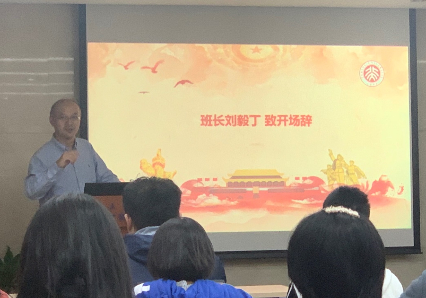 2019年10月12日上午,1班召开班会。班会前,第二班主任、学工部副部长樊志对班会内容和形式做出进一步指导,提出诸多完善建议。班会着重回顾共和国建设发展历程,特别是在科技领域取得的重大成就,包括阅兵仪式上展示的直20所有部件全部国产、华为先进的5G技术,以激发在座同学们的民族自豪感和自信心。在小组讨论和分享环节,同学们热烈讨论、踊跃发言,分享“自己与党和国家”的故事。班会最后,同学们前往景色优美的燕南园,一起录制告白祖国的视频,将班会氛围推至高潮!