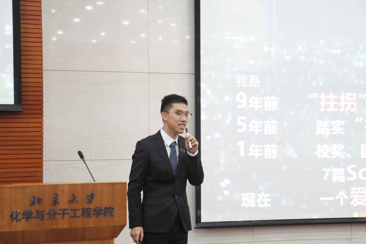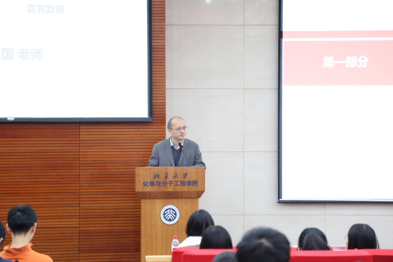 党委书记马玉国在致辞中表示,化学学院历史上有很多优秀人物,其事迹大都在书本上、报道中。大家能够在现场听到五位优秀的化院学子讲述自己的故事,见证新时代青年人的风采,是一件值得高兴的事情。马老师鼓励大家从榜样的故事获得启发,无惧远方、勇往直前,做新时代有理想、有活力、敢奋斗的青年。