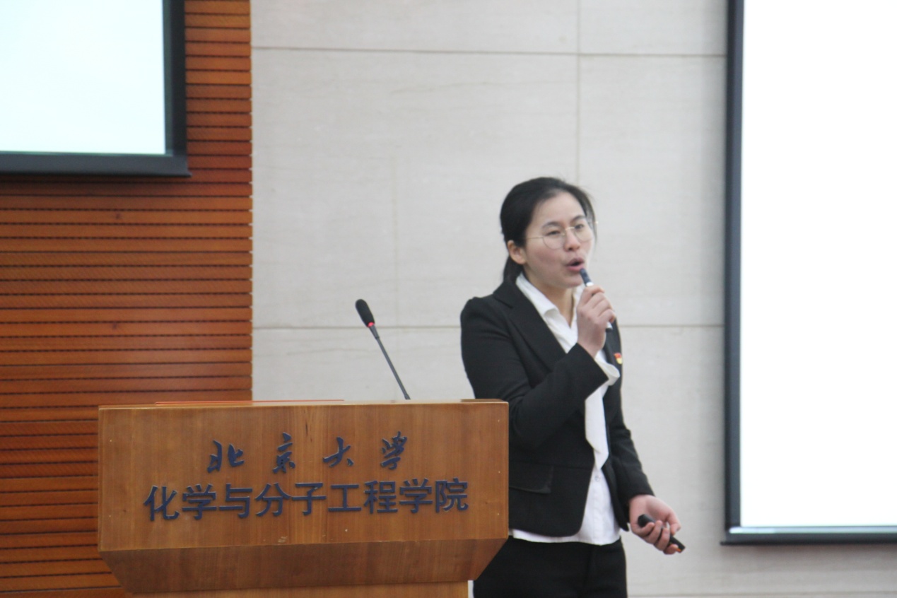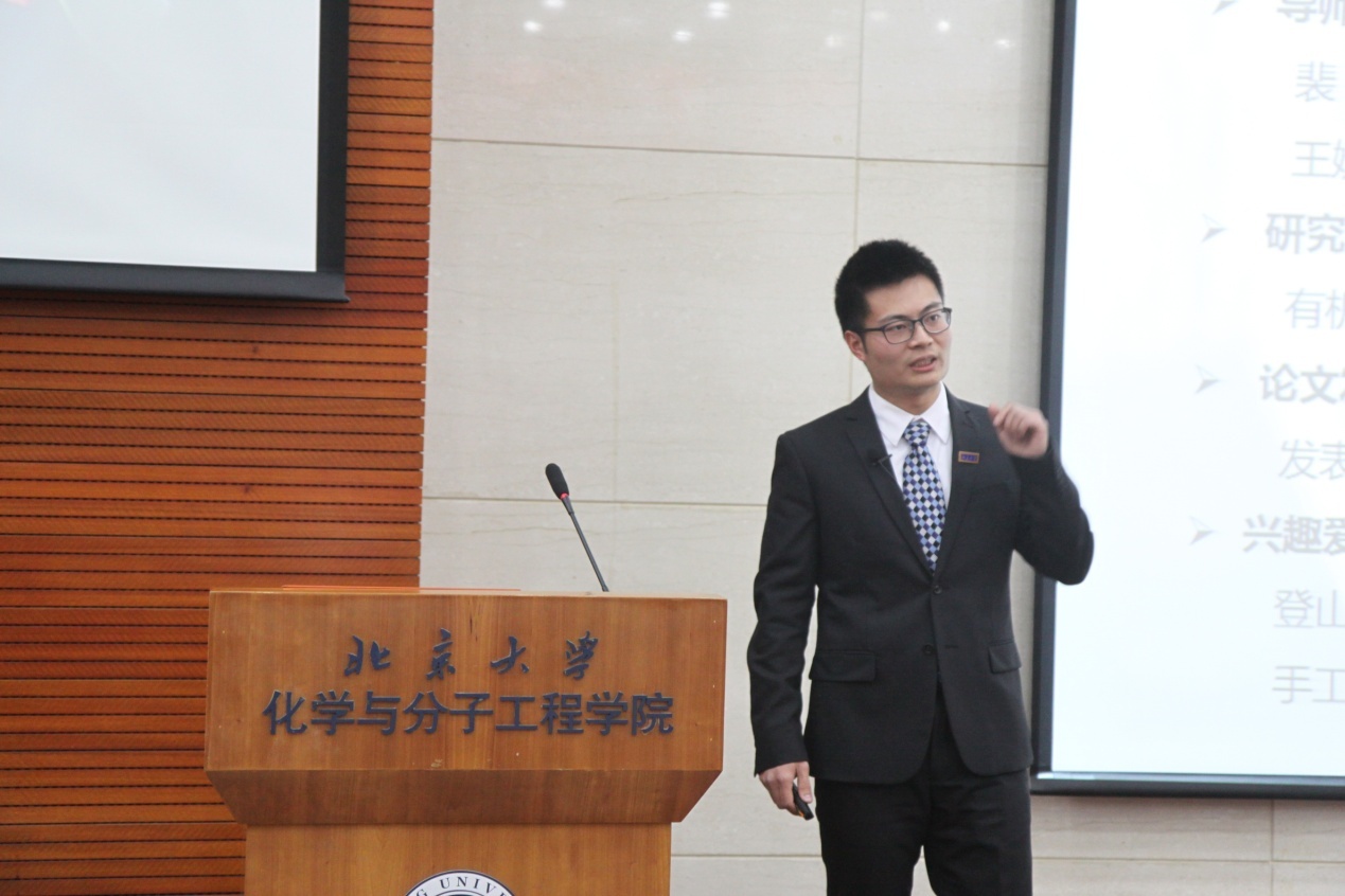 2014级研究生顾春晖同学作为学术科研代表,在博士期间发表高水平SCI论文12篇,其中第一作者7篇,获得了研究生国家奖学金、化学之星、3003新葡官方网站三好学生等多项奖励。他向同学们介绍了“要”成果、“拼”成果和“熬”成果的艰辛却丰富的科研经历,也展现了自己在音乐、绘画、摄影等方面的闲情逸致。顾春晖同学告诉大家,作为化学学院几百名普通人之一,坚守自己的本职工作、坚守科研的信念、坚守一名普通人的幸福,即使未曾有过大放异彩的青春,还是能收获精彩且有意义的人生。他向大家展现了一个严谨求实、爱好广泛的学术科研代表的风采。化学学院党委副书记赵美萍为顾春晖同学颁发了学术科研榜样的奖状和奖杯。