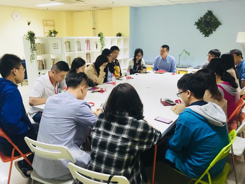 2018年5月2日下午一点,化学学院全体党支书在A区学生活动室就今天上午“五四奖章得主分享会”进行座谈。化学学院党委副书记王菲老师,团委书记张舒老师,学工办尹航老师参与本次座谈会。