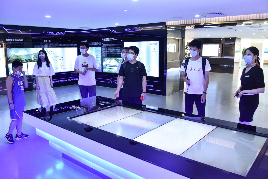 伟大的胶东人民铸就了如今的灿烂成果,城市在科学的规划与建设下,日益走向新兴。7月28日下午,同学们到烟台开发区城市展示中心进行交流学习,通过聆听讲解,观看图文、沙盘和数字影院,了解当代城市建设与发展。一张张不同年代的对比图让同学们更加意识到,正是由于国家政治地位的稳固、经济实力的增强和科技水平的提高,大家才能安居乐业,追求更加健康、更加便捷的生活。这生活是来之不易的,更是需要每一位年轻人投身其中不断建设、发展的。