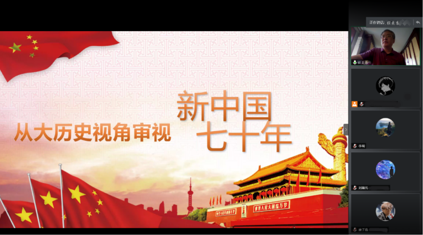 为帮助同学在走进祖国田野之前建立正确看待与思考问题的角度、思维,掌握问题分析与判断方法,更好地用理论指导实践,化学学院于6月18日和6月24日分别邀请到马克思主义学院程美东教授和汪越老师为大家讲授思政实践理论课。程美东以《大历史视野下的新中国七十年》为主题分析了新中国成立70年的历史发展,并强调中国社会主义道路、理论、制度及文化不断发展,拓展了发展中国家走向现代化的途径,为解决人类问题贡献了中国智慧和中国方案。汪越以《疫情防控彰显中国特色社会主义制度优势》为主题讲述了中国特色社会主义制度从被质疑到在疫情防控中彰显独特优势的巨大转变,并具体分析了其优势所在。两门理论课程着眼中国社会现状,讲清了问题、解答了疑惑,为同学们开展社会实践提供了充分的理论指导。