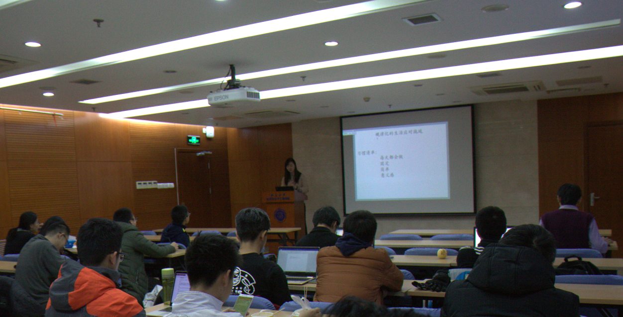 王璟奕老师与在场同学进行了一场有趣的对时间管理的探索。在讲述中,老师深刻讲解了拖延的原因与拖延产生的自责现象,同时提出了以自我关怀的方式来减轻拖延的自责。此外,王璟奕老师讲解了如何运用柯维时间管理法以及详细的任务规划书来切实解决拖延的问题,还通过有趣的实验——津巴多时间观念量表——来了解同学们的时间观念并做出分析。在讲座过程中,老师将生活中一些有意思的现象与所涉及的心理学知识相结合并做出一一讲解,同学们十分投入。