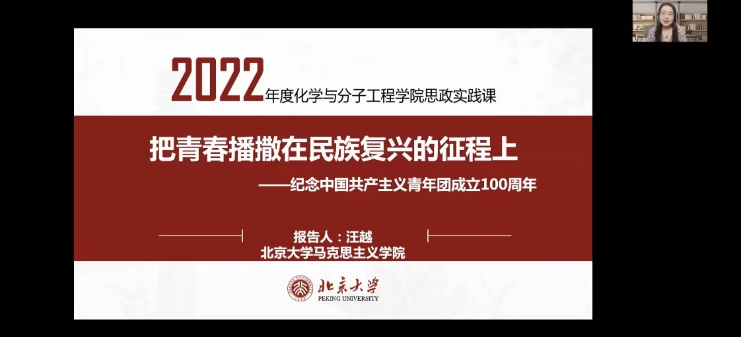 为帮助同学在走进祖国田野之前建立正确看待与思考问题的角度、思维,掌握问题分析与判断方法,更好地用理论指导实践,化学学院于6月29日和7月7日分别邀请到马克思主义学院程美东教授和汪越老师为大家讲授思政实践理论课。程美东老师按时间线顺序为同学们分析讲述了中国共产党历次全国代表大会的会议内容、会议精神和历史价值,并强调集中智慧、敢于创新、团结群众是中国共产党宝贵的执政经验,作为新一代的青年,要深刻学习体会“四史”,感悟党和国家百余年来的奋斗历程和发展经验,将其与我们的专业领域和实际社会相结合,为中华民族的伟大复兴贡献自己的一份力量;汪越以《把青春播撒在民族复兴的征程上——纪念中国共产主义青年团成立100周年》为主题讲述了马克思主义在中国的传播历程,中国共产党和共青团的建立历程,有助于同学们全面、客观地看待中国政治制度的由来,强调同学们以先进人物为榜样,运用大历史观指导自己的学习和生活。