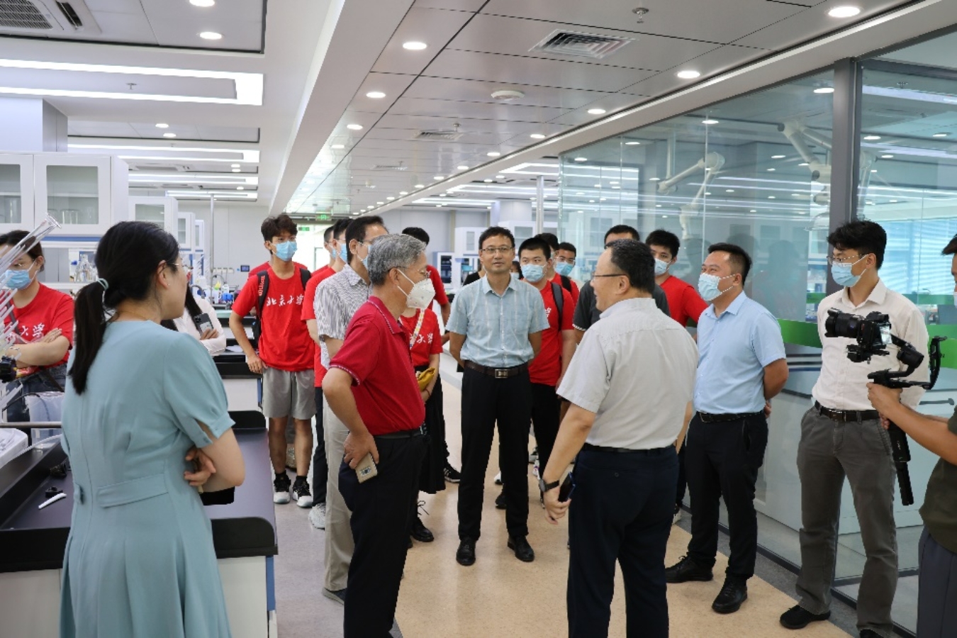 7月11日下午,实践团首先来到了丰金生物医药公司,同学们参观了质检研发楼。穿梭于各个楼层,相关研究人员向同学们介绍了不同种类的实验室及其功能,并展示了干净而整洁的科研环境。离开质检研发楼后,同学们前往会议室参与交流。会上,山东丰金生物工程有限公司董事长朱希强博士介绍了我国生物医药行业的一些现状,并就“创新药”这一概念提出了许多新颖的观点,强调了基础研究在生物医药行业发展中的重要性。