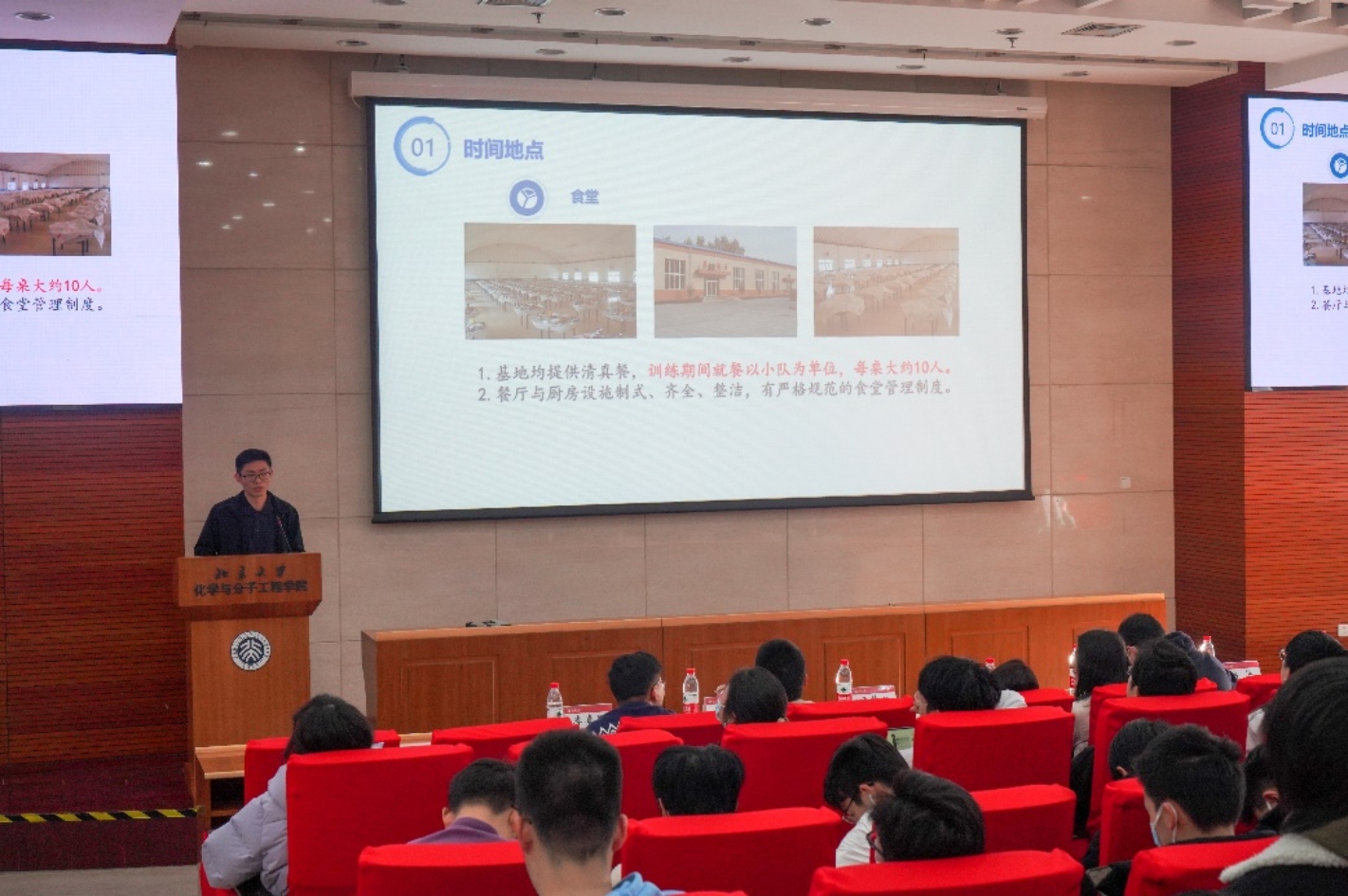 会议在一段往届军训视频中开始。与大学校园内的学习生活截然不同,军训是对军旅生活的模拟体验和对体能毅力的充分锤炼。虽然有着道不尽的艰苦,但视频中他们整齐划一的规范动作,铿锵有力的军令口号,风林火山,气贯长虹,充满着青年人的蓬勃朝气。