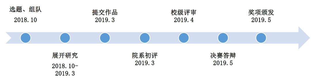 时间与“跨学科”竞赛基本相同,方式参照“挑战杯”竞赛。作品须经作者本人或集体申报,由一名具有副高级专业技术职称的指导教师(或教研组)推荐,经本院系学籍管理、教务、科研管理部门审核确认(签章齐全)。参赛作品申报后,还需在本院(系、所、中心)将对申报作品进行初评。作品需要提交给第一作者所在的院系进行初审,提交方式届时将通过BBS学术科创部(XSKC)版面和部门公众号发布。