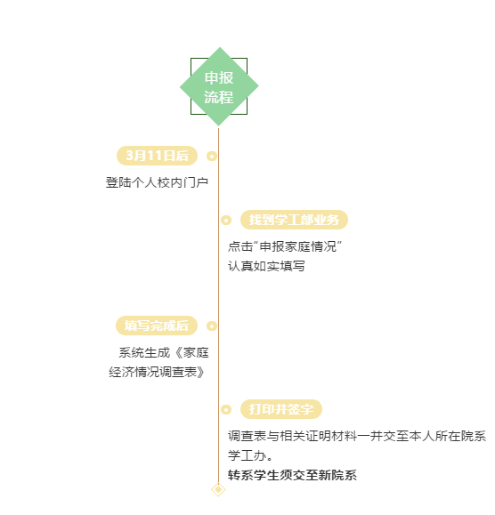 建议本人或家庭存在经济困难的同学参与本次调查认定,客观真实地上报家庭经济情况信息,具体上报流程如下: