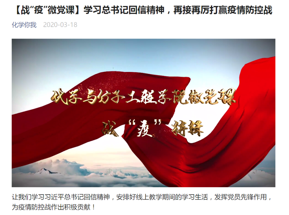 连日来,在党中央坚强领导部署和全国上下的共同努力下,国内疫情防控形势向好,支部同志们就疫情见闻进行了分享和讨论。金红君分享了自己近期在东京大学的留学生活见闻,面对不同国家的疫情防控措施与形势,能够深刻感受到中国特色社会主义制度的优越性、党中央的魄力和担当,习总书记把保障人民健康安全放在第一位,是对尊重人权最好的诠释。李照伟表示学校和院系为了保障大家的学习与生活做了很多工作,我们也要积极配合共同努力。身在武汉的预备党员田婕表示过去两个月的生活虽然有些不便之处,但社区志愿者们给居民送菜、为孤寡老人买药送药等不辞辛苦地服务社区,她自己也在第一时间报名了社区志愿者,积极承担起社区团购统计和接货的任务,希望为社区居民做出力所能及的贡献,正如习总书记的话,“让青春在党和人民最需要的地方绽放绚丽之花”。武汉的公交已经部分恢复通行,生活秩序在逐步恢复,窗外的梧桐开始长出新叶,春天真的来了,相信我们离胜利也不远了。