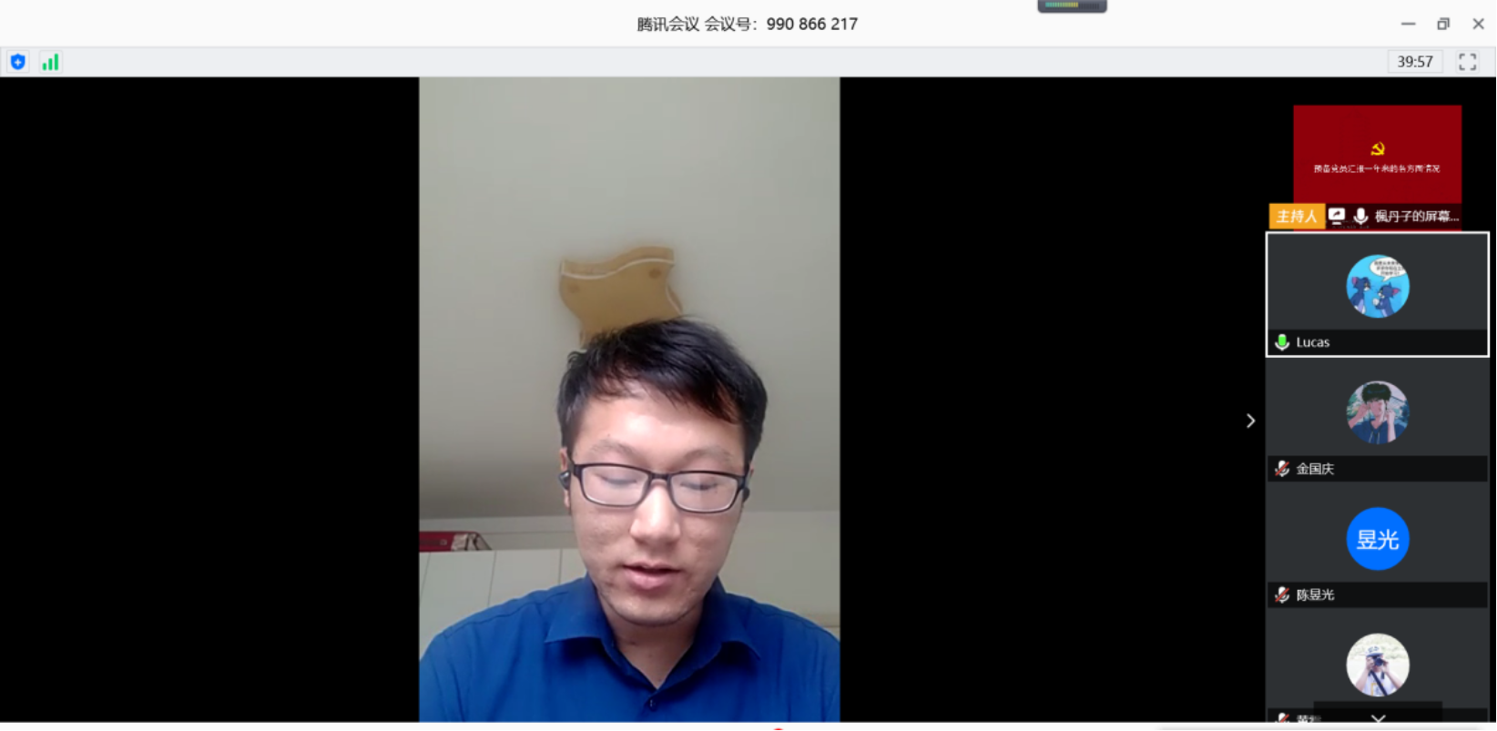 陈昱光同学宣读了自己的入党志愿书,表达了自身加入中国共产党的强烈意愿和美好向往。陈昱光同志的入党介绍人王琦贤和高锐两位同志对其发展情况做出了全面的评价,强调了陈昱光同志为人正直、作风良好、追求进步等,推荐其成为党的发展对象。黄震和刘启东也对陈昱光的为人处世做出了高度评价,推荐其成为党的发展对象。随后,张攀同志宣读了对陈昱光同学作为党的发展对象的审查情况。根据支部党员投票表决情况,支部决议同意将陈昱光同学发展为中国共产党预备党员。最后陈昱光同志宣读了入党誓词。
