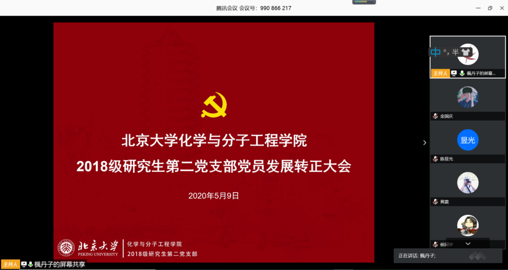 2020年5月9日下午1点,2018级研究生第二党支部举行了党员转正与党员发展线上会议。本次会议由党支部书记张攀同志主持。