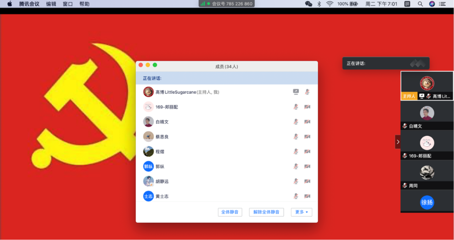 2020年5月12日晚7时,3003新葡官方网站2017级研究生第二党支部在线上召开支部大会。本次支部大会由支部书记高博同志主持,主要内容包括讨论徐扬、邢涵两位同学转为正式党员以及发展盛浪、阙雪雁两位同学发展为预备党员。会议伊始,高博同志介绍了本次支部大会的主要内容和之后支部拟开展各项活动。